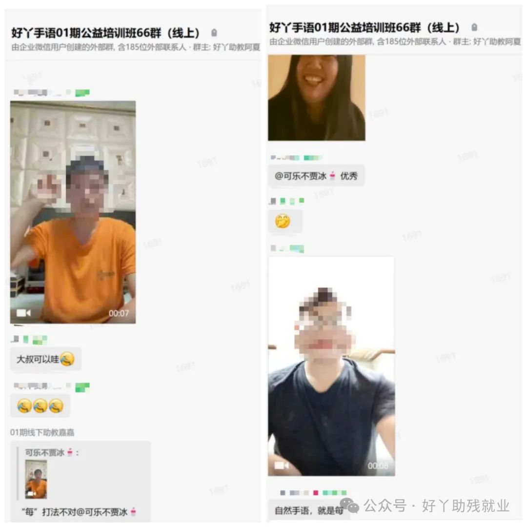 干货十足的手语课程,踏实好学的学员,让大家的周末变得更有意义。课程结束,聋友们一一将作业发了出来,寻求老师的批改。化障碍为大爱,好丫助残01期手语公益培训已经开到第三课了,后续5节课程也将在陆续开课,希望同学们在这里学有所成,学以致用。