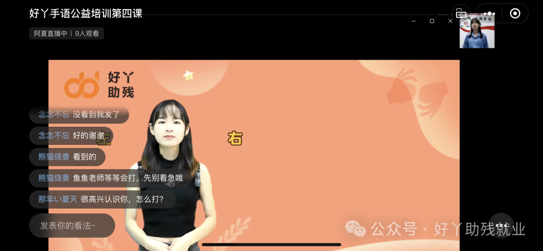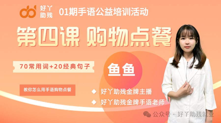 2024年,4月22日晚上19:00,由好丫金牌主播鱼鱼给聋友们做了“好丫手语公益培训01期第四课-购物点餐”的教学,围绕购物点餐的70个单词和20个经典句子,老师分别做了三次的精彩教学。