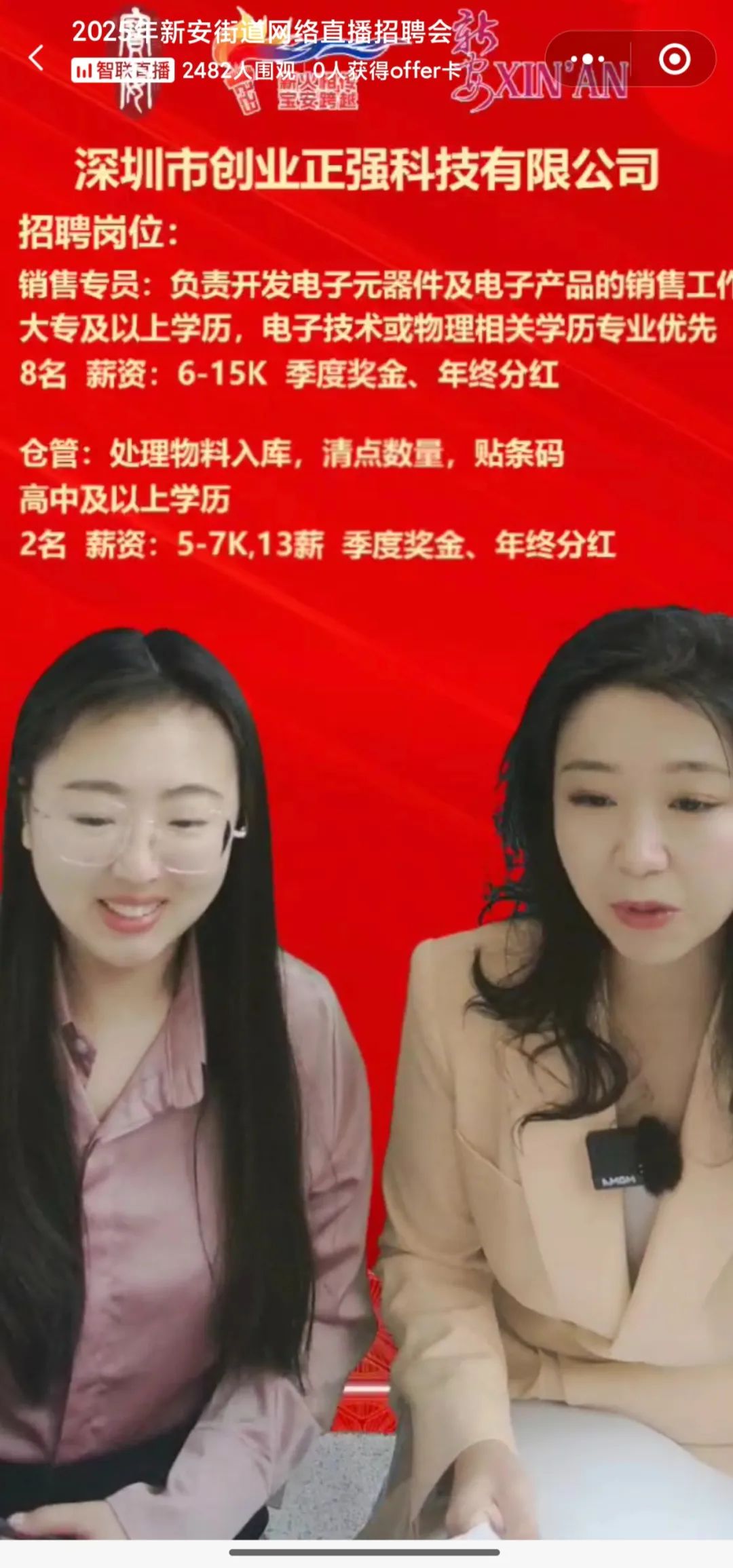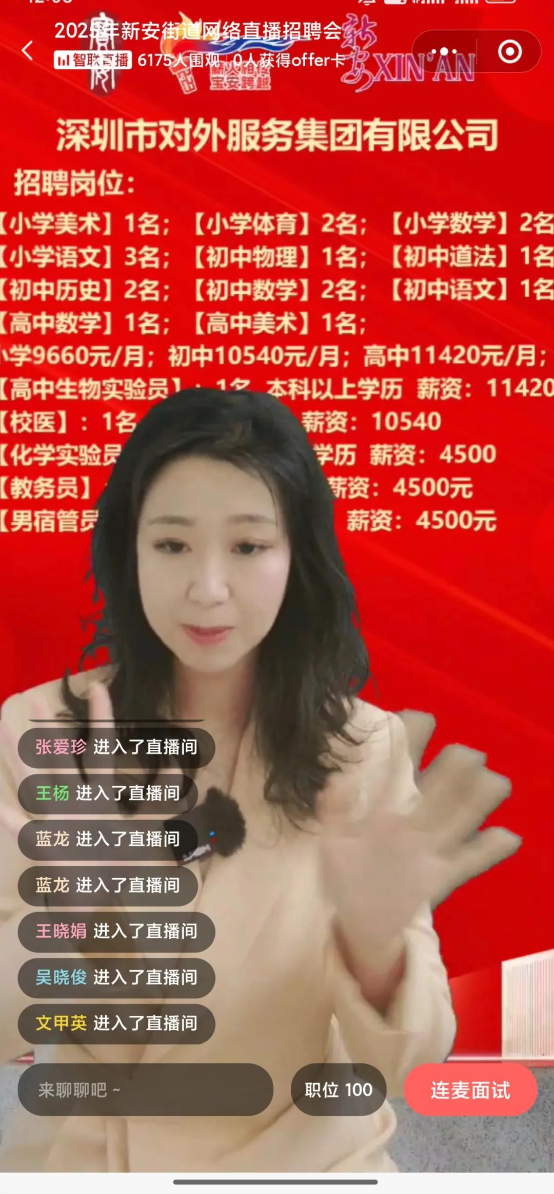 除现场招聘外,当天开展直播的带岗活动也非常火热。通过直播间弹幕实时答疑,求职者能够实时了解企业情况、岗位需求和薪资待遇等信息,并在直播间一键投递简历。据统计,直播累计超6000人观看,收到简历近600份。